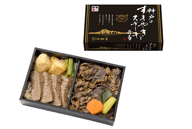 - 新神戸駅[ ㈱淡路屋 ]神戸のすきやきとステーキ弁当1,380円(税込)